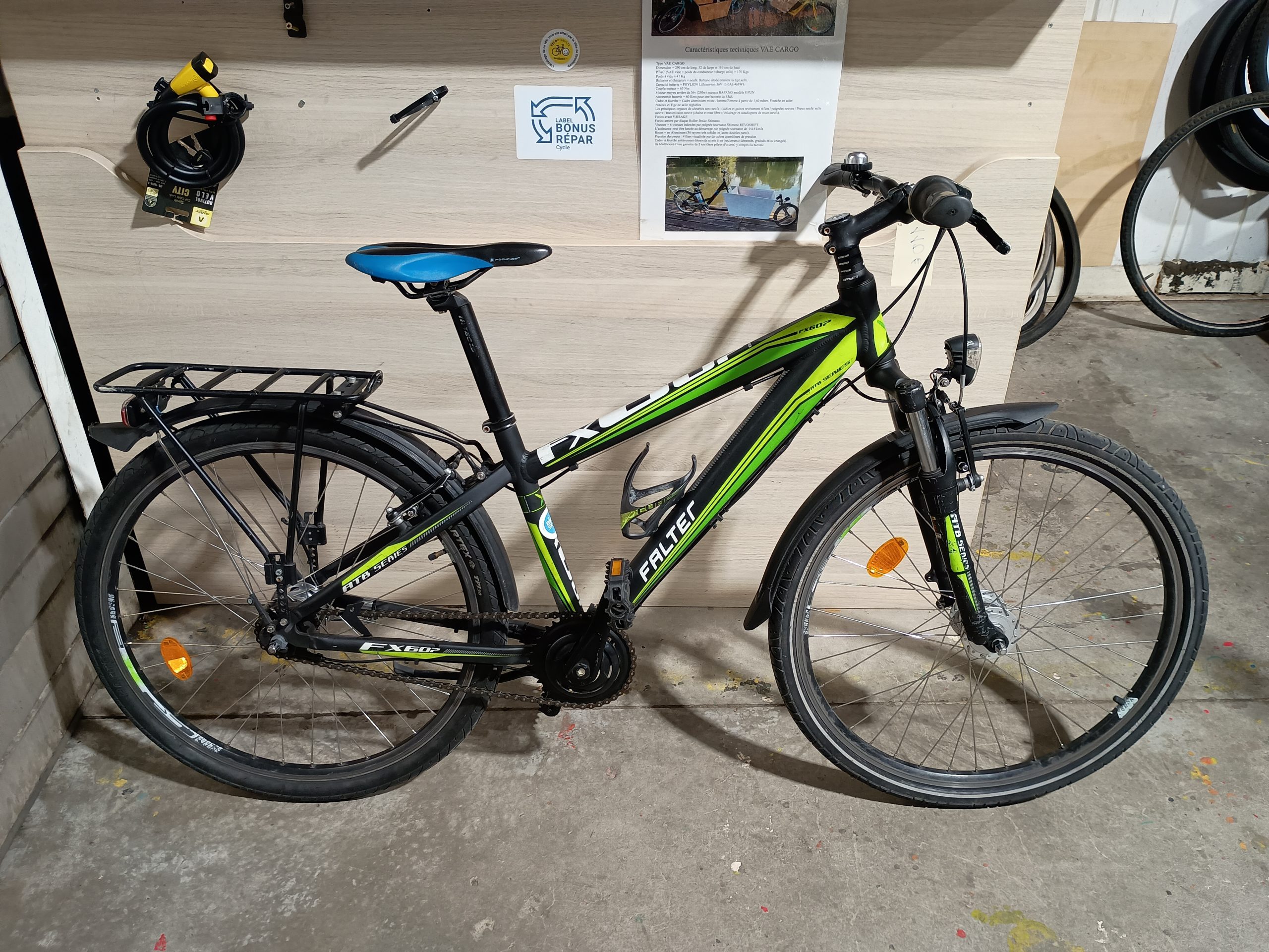 1479 VTT 26″ noir/vert FALTER : 7 vitesses NEXUS, garde-boue, porte bagage, lumières, béquille, sonnette