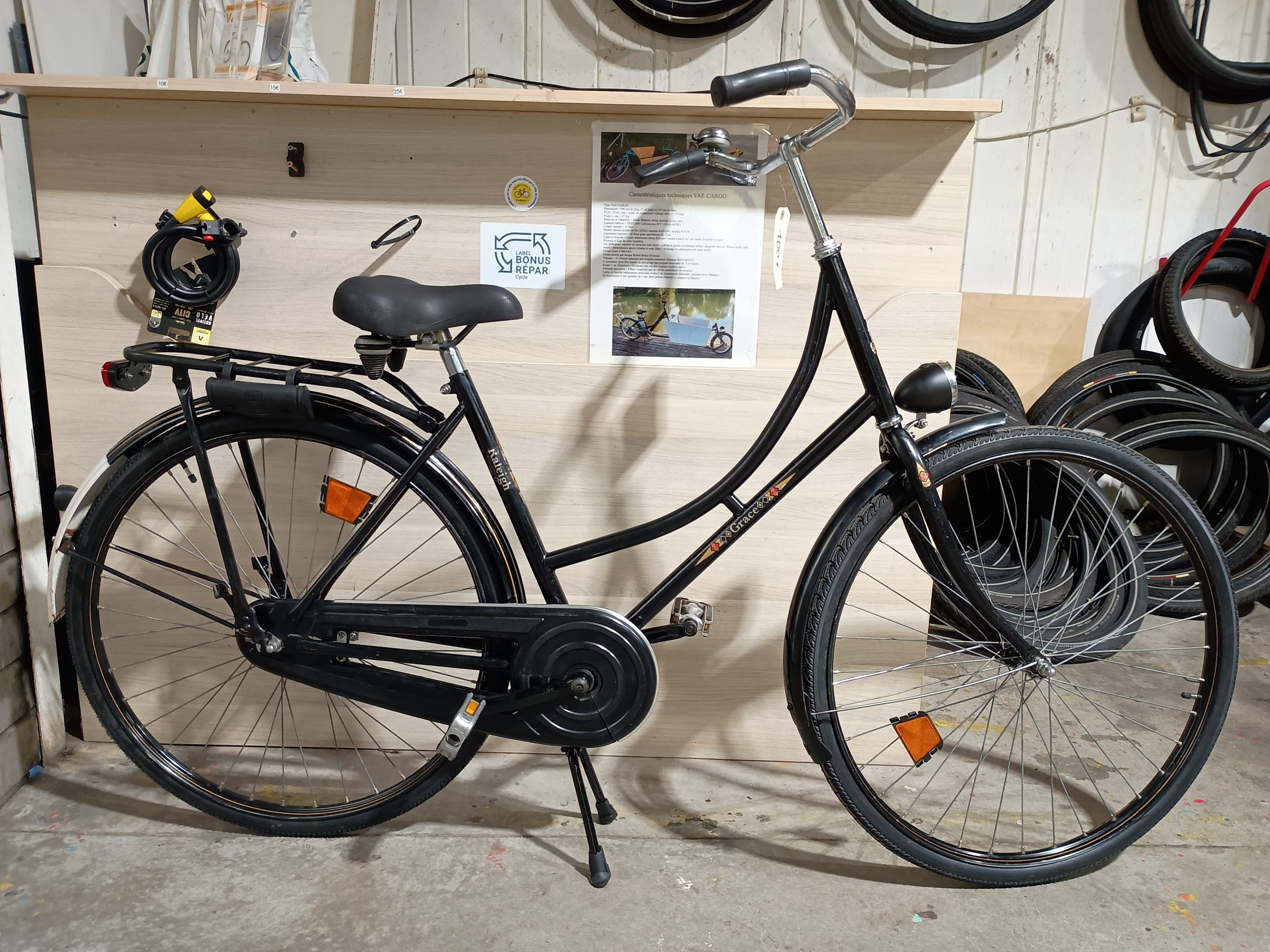 1513 Ville 635 noir RALEIGH : mono vitesse, garde-boue, porte bagage, lumières, béquille, sonnette
