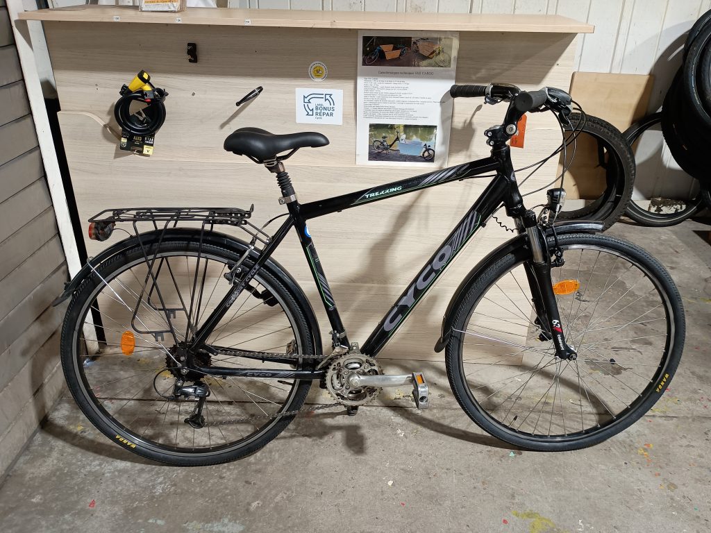 1526 Ville 28″ noir CYCO 13 janvier 2026S&C 140,00€ quantité de 1526 Ville 28" noir CYCO Ajouter au panier Catégorie : Vélo Description Description 1526 Ville 28″ noir CYCO : 3×6 vitesses, garde-boue, porte bagage, lumières, béquille, sonnette Produits similaires 1408 VTT 26″ noir FIT 75,00€ 1433 VTC 26″ bleu DECATHLON 70,00€ 1328 Enfant 24″ gris CUPS 45,00€ 1351 Vélo Cargo 26″ bleu GITANE 440,00€