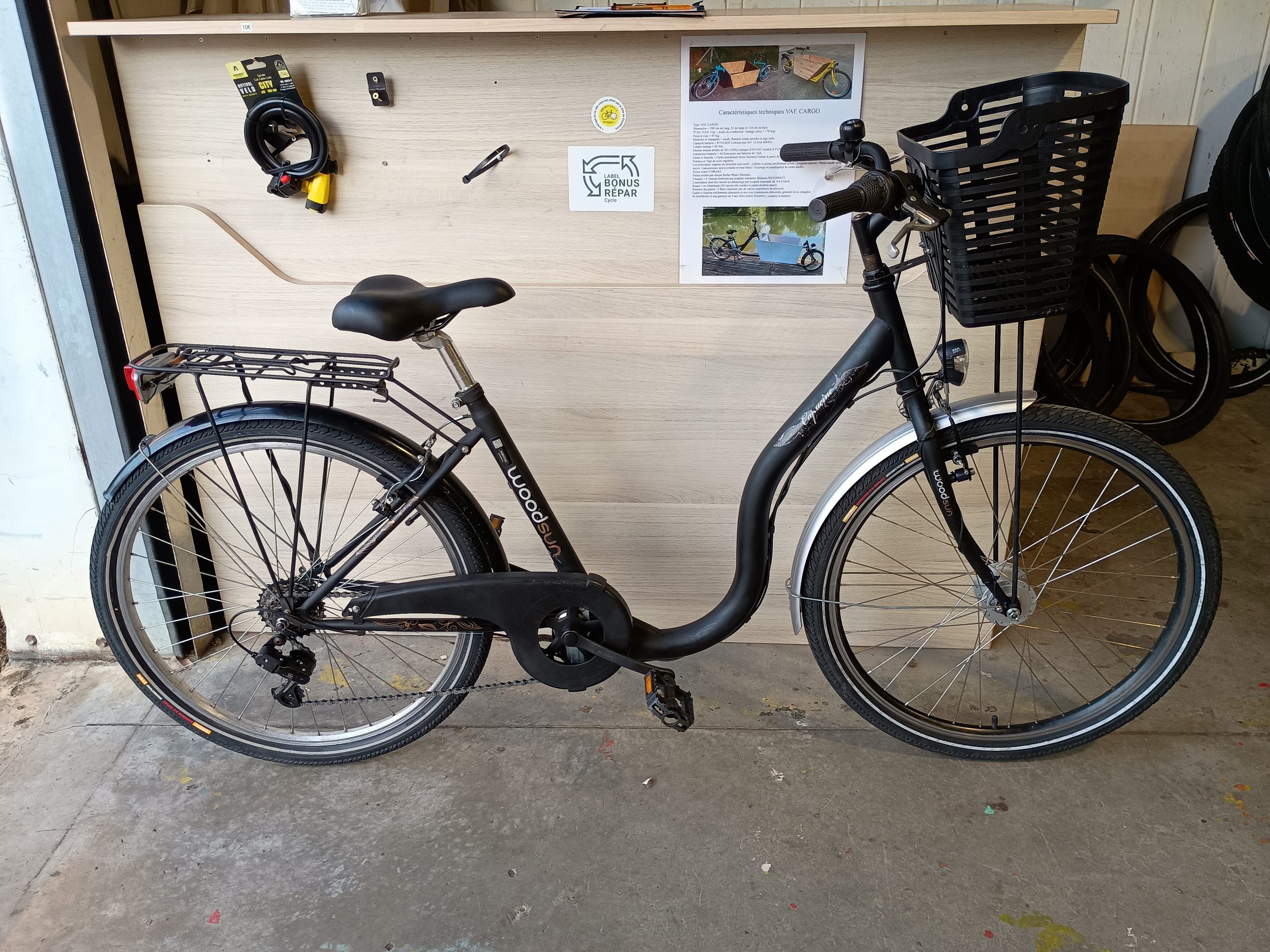 1533 Ville 26″ noir WOODSUN 27 janvier 2026S&C 120,00€ quantité de 1533 Ville 26" noir WOODSUN Ajouter au panier Catégorie : Vélo Description Description 1533 Ville 26″ noir WOODSUN : 6 vitesses, garde-boue, porte bagage, lumières, béquille, sonnette Produits similaires 1388 Ville 650 gris KETTLER 110,00€ 1432 Ville 650″ vert POULIDOR 90,00€ 1430 VTT 26″ blanc/rose ROCKRIDER 60,00€ 1416 Ville 28″ gris NAKAMURA 100,00€
