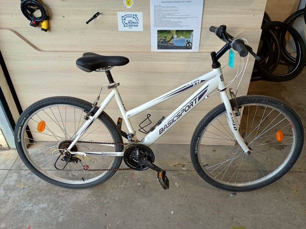 1542 VTT 26″ blanc BASIC SPORT 27 janvier 2026S&C 70,00€ quantité de 1542 VTT 26" blanc BASIC SPORT Ajouter au panier Catégorie : Vélo Description Description 1542 VTT 26″ blanc BASIC SPORT : 3×6 vitesses, béquille, sonnette Produits similaires 1432 Ville 650″ vert POULIDOR 90,00€ 1328 Enfant 24″ gris CUPS 45,00€ 1359 Tricycle VAE 24″ vert EVASION 1.400,00€ 1415 Ville 28″ gris/noir VORTEX 120,00€
