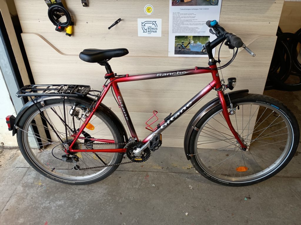 1544 VTT 26″ noir/rouge GITANE : 6 vitesses, garde-boue, porte bagage, lumières, béquille, sonnette