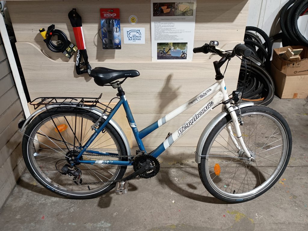 1583 VTC 26″ blanc VERMONT 16 mars 2026S&C 75,00€ quantité de 1583 VTC 26" blanc VERMONT Ajouter au panier Catégorie : Vélo Description Description 1583 VTC 26″ blanc VERMONT : 3×6 vitesses, garde-boue, porte bagage, lumières, béquille, sonnette Produits similaires 1125 Ville 28″ Rouge CENTANO 70,00€ 1432 Ville 650″ vert POULIDOR 90,00€ 1347 Enfant 24″ vert SM 45,00€ 1351 Vélo Cargo 26″ bleu GITANE 440,00€